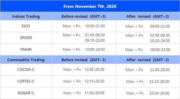 1. Some trading products will not be available for trading on November 7, 2021 due to DST adjustment.