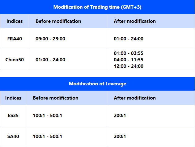 2. The trading time of FRA40 will be 01:00 – 24:00 (GMT+3)