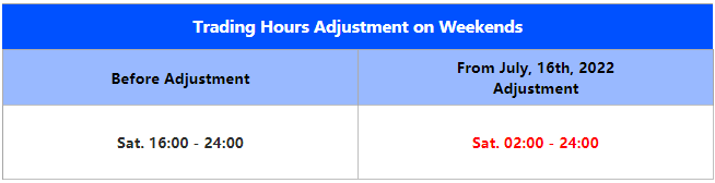 To provide clients with a better trading experience, VT Markets will adjust the trading session from 02:00 to 24:00 (GMT+3) every Saturday since July 16, 2022.