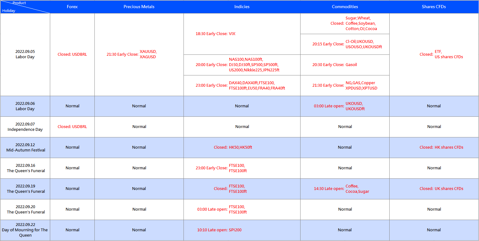 The above data is for reference only, please refer to the MT4/MT5 software for specific data.