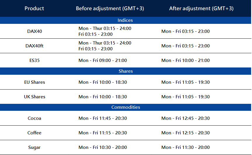 With the standard time commencing in the EU and UK on 31 October, there will be changes to the trading hours for certain products on MT4/MT5.