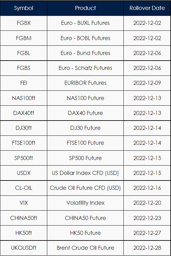 The new futures rollover dates are listed in the table below.