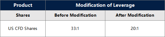 1. All specifications for US shares stay the same except leverage.
